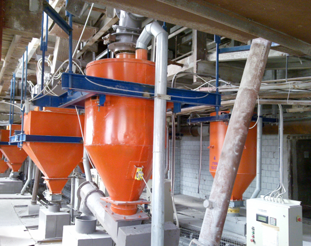 原料倉是存放原料的地方,不同種類的原料存放在不同的倉內,這些倉與配料機相連,原料則通過輸送管線被輸送到配料機中進行混合,所生成的混合物通過物料輸送係統輸送到下一工序或者儲存地點。